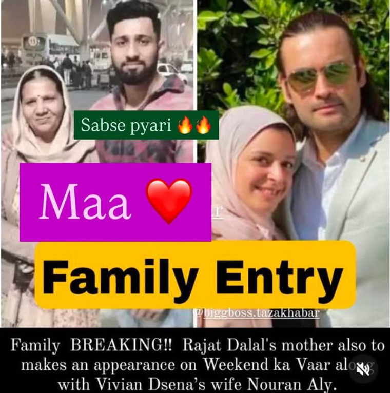 दो महीने बाद वीकेंड के वार में एक बार फिर कुछ ऐसा ही होने वाला है। बिग बॉस 18 की पल-पल की खबरें देने वाले एक इंस्टाग्राम पेज ने जानकारी देते हुए बताया कि इस बार रजत दलाल और विवियन डीसेना के परिवार वाले सलमान खान के साथ मंच पर नजर आएंगे। रजत दलाल (Rajat Dalal) के घर से उनकी मां आएंगी, वहीं विवियन डीसेना की पत्नी नौरान अली अपने पति को मोटीवेट करने और अन्य कंटेस्टेंट की क्लास लगाने के लिए बिग बॉस में आने वाली हैं।