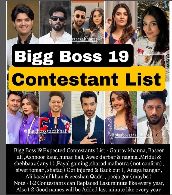 बिग बॉस 19 के संभावित कंटेस्टेंट्स की लिस्ट