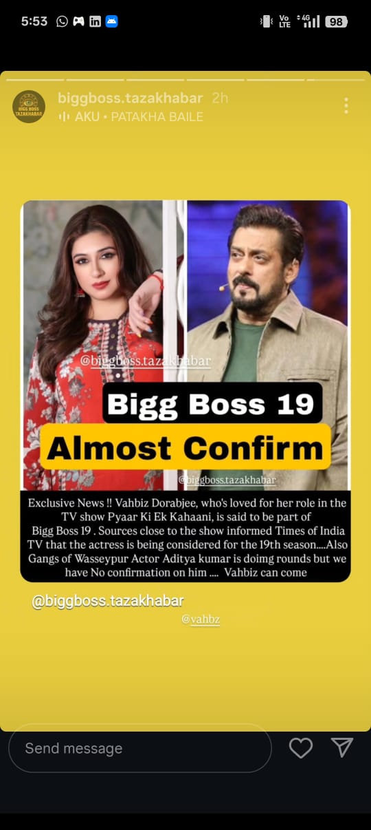 फैंस इस अपडेट के सामने आने के बाद एक्साइटेड हैं, क्योंकि वहबिज दोराबजी अपने ग्लैमरस अंदाज के लिए जानी जाती हैं। अगर बीबी हाउस में उनकी एंट्री होती है, तो घर में ग्लैमर का तड़का लगेगा और उनकी पर्सनैलिटी भी स्ट्रॉन्ग है, जिससे दर्शकों का पूरा मनोरंजन होगा।