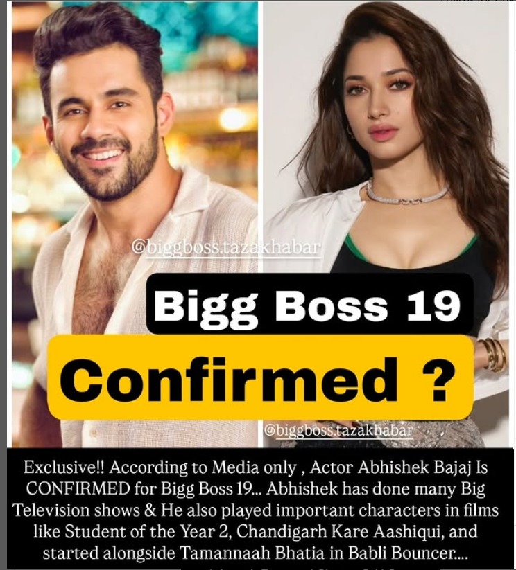 टीवी और बॉलीवुड एक्टर अभिषेक बजाज का नाम बिग बॉस 19 के लिए तकरीबन फाइनल माना जा रहा है। अभिषेक के बारे में बता दें कि उन्होंने छोटे पर्दे पर कई पॉपुलर सीरियल में काम किया और अपनी एक्टिंग से लोगों के दिलों में खास जगह कायम की।