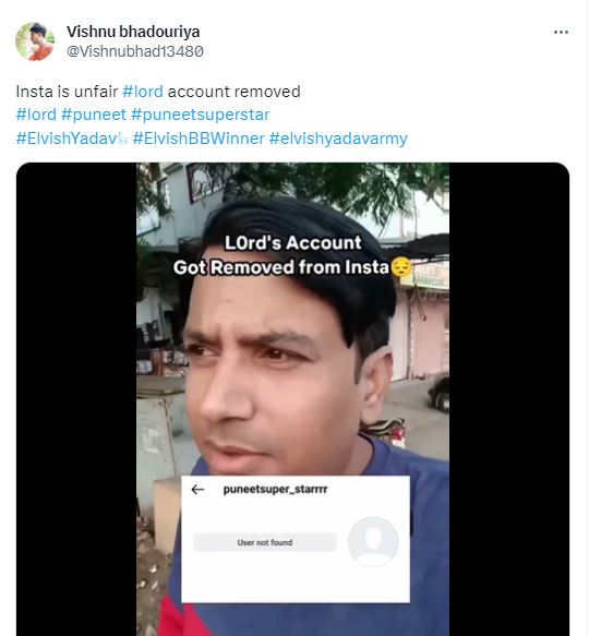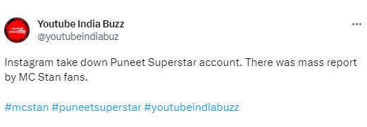 अन्य यूजर ने लिखा, "इंस्टाग्राम ने पुनीत सुपरस्टार का अकाउंट डिसेबल कर दिया है, क्योंकि एमसी स्टैन के फैंस की तरफ से उस पर कई बार रिपोर्ट किया गया है"।