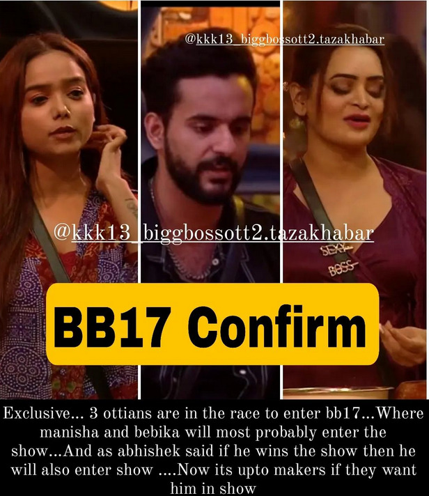 अब हाल ही में बिग बॉस खबरी ने अपने इंस्टाग्राम पेज पर जानकारी शेयर करते हुए बताया कि ओटीटी के बाद टीवी पर आने वाले अगले सीजन यानी कि बिग बॉस 17 में मनीषा रानी, बेबिका धुर्वे और अभिषेक मल्हान को पार्टिसिपेट करने का मौका मिल सकता है। हालांकि, ऐसा होगा या नहीं, ये तो बिग बॉस सीजन 17 की घोषणा के साथ ही पता चलेगा।