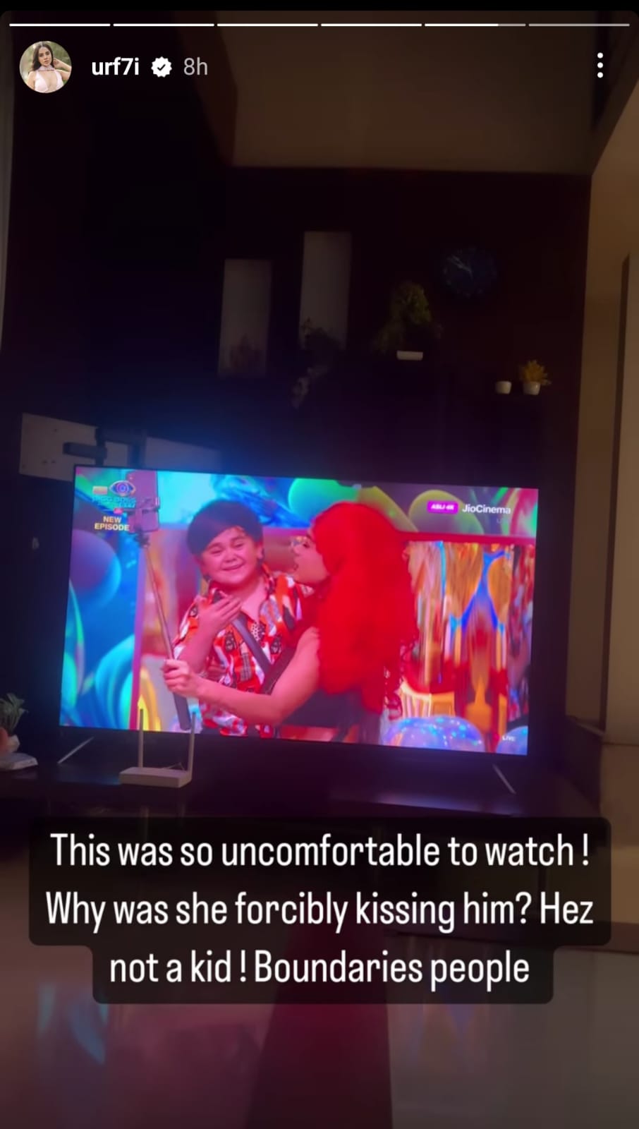 उर्फी जावेद ने अपनी इंस्टा स्टोरीज पर इसका वीडियो शेयर कर अपना गुस्सा जाहिर किया है। उन्होंने इस वीडियो के साथ लिखा, ‘यह देखना बहुत अनकंफर्टेबल करने वाला था। वह क्यों उसे जबरन किस किए चली जा रही है? वह कोई बच्चा नहीं है। सीमाएं समझो लोगों।' वीडियो में अब्दु रोजिक को ये भी कहते सुना गया कि काशा उन्होंने किसी इस टास्क के लिए किसी और को चुना होता।