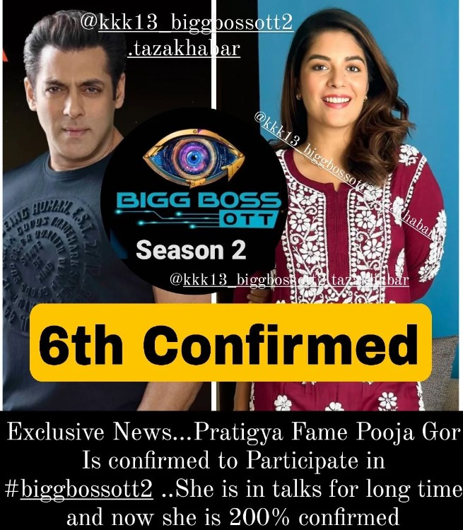 बिग बॉस ओटीटी सीजन 2 में अब जिस सेलिब्रेटी के शामिल होने की खबर सामने आई है वो टीवी की दुनिया पर राज कर चुकी हैं। बिग बॉस ओटीटी को लेकर अपडेट शेयर करने वाले एक फैन पेज ने जानकारी दी है कि एक्ट्रेस पूजा गौर शो के लिए कन्फर्म हो गई हैं। पेज ने ये भी बताया कि एक्ट्रेस से मेकर्स की लंबे समय से बात चल रही थी और अब उन्होंने बिग बॉस ओटीटी सीजन 2 को हां कह दिया है। हालांकि, शो की तरफ से अभी कोई आधिकारिक घोषणा नहीं की गई है।