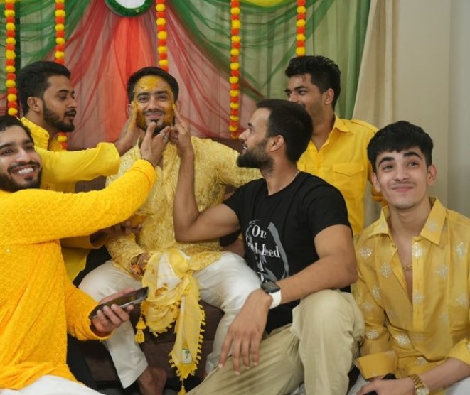 अदनान ने जो तस्वीरें शेयर की हैं, उसमें उनकी दुल्हन का चेहरा ढका नजर आ रहा है। सभी ने येलो थीम को फॉलो करते हुए हल्दी की रस्म पूरी की है। एक तस्वीर में अदनान अपने दोस्तों के बीच चेहरे पर हल्दी लगाए नजर आ रहे हैं।