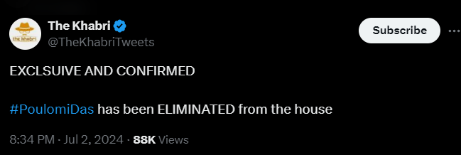 अब इन पांचों सदस्यों में से एक और वीकेंड पर बाहर हो सकता है। आपको बता दें कि बीते हफ्ते पौलोमी और शिवानी कुमारी का घर में टास्क के दौरान एक बड़ा झगड़ा देखने को मिला था, जिसमें उन्होंने सोशल मीडिया इन्फ्लुएंसर के साथ गाली गलौच किया था।