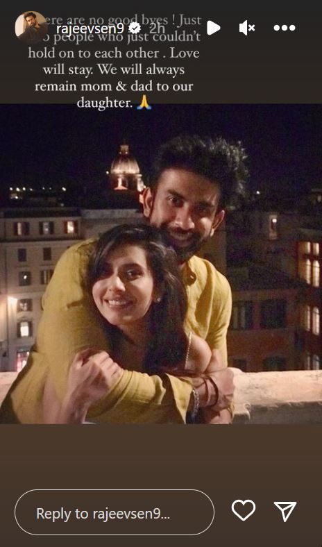 चारु असोपा और राजीव सेन का 8 जून 2023 को तलाक हो गया। राजीव सेन ने अपनी इंस्टाग्राम स्टोरी पर चारु के साथ एक तस्वीर शेयर की। फोटो के साथ राजीव ने कैप्शन में लिखा, "यहां कोई अलविदा नहीं है। भले ही दो लोग साथ न रह सकें, लेकिन प्यार हमेशा रहेगा। हम हमेशा अपनी बेटी के लिए मॉम एंड डैड बने रहेंगे।"