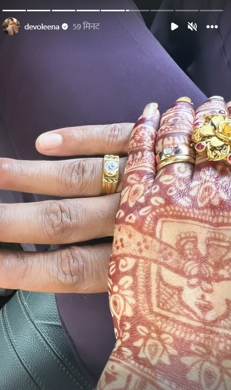 दुल्हन बनीं देवोलीना ने दिखाई अंगूठी