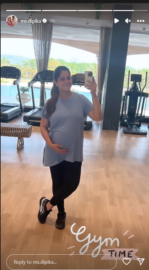 दीपिका कक्कड़ अपनी प्रेग्नेंसी से जुड़ी हर छोटी-बड़ी डिटेल सोशल मीडिया पर शेयर करती हैं। इसके अलावा पति शोएब इब्राहिम के साथ डिनर डेट की फोटो सहित फैमिली के साथ सेलिब्रेट किए जाने वाले किसी भी आयोजन की झलक भी दीपिका सोशल मीडिया यूजर्स को दिखाती हैं। कुल मिलाकर 'ससुराल सिमर का' एक्ट्रेस प्रेग्नेंसी के इस फेज के हर लम्हे को एंजॉय कर रही हैं। हाल ही में उन्होंने इंस्टा स्टोरी पर मिरर सेल्फी शेयर की, जिसमें उन्हें जिम के कपड़ों में देखा जा सकता है।