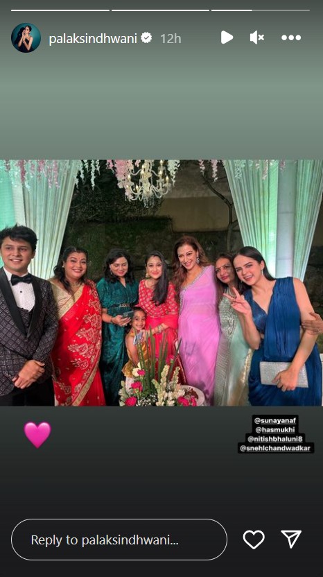 एक्ट्रेस की ये फोटो 'जेठालाल' का रोल प्ले करने वाले दिलीप जोशी के बेटे की शादी से है। पलक सिंधवानी ने कुछ फोटोज इंस्टाग्राम स्टोरी पर शेयर की है, जिसमें उन्होंने दिशा वकानी के साथ क्लिक कराई फोटो भी शेयर की है।