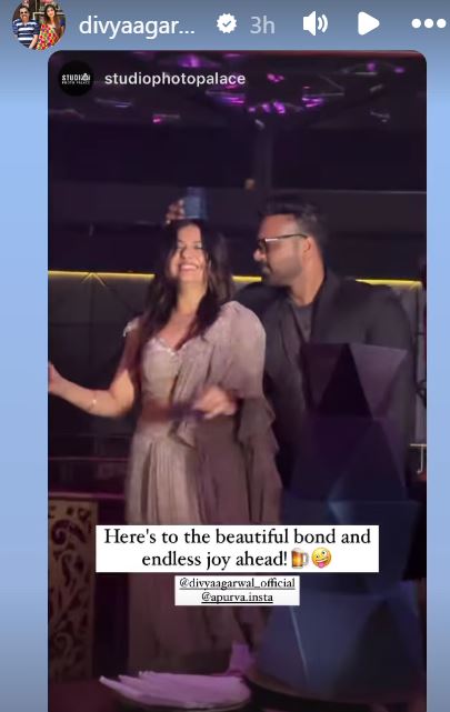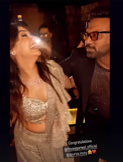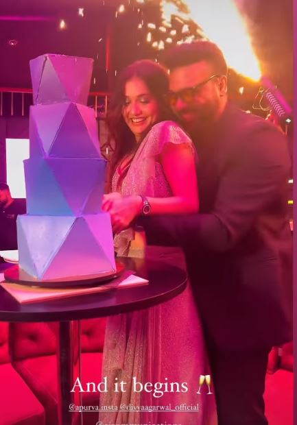 दिव्या अग्रवाल और अपूर्व पडगांवकर ने अपनी संगीत नाइट में खूब मस्ती की। यूनिक फोर टियर केक काटने से दोस्तों के साथ डांस करने तक, होने वाले दूल्हा-दुल्हन ने शादी से पहले एक खूबसूरत शाम का आगाज किया। कपल ने एनिमल के पॉपुलर सॉन्ग जमाल कुडू और ब्रह्मास्त्र के सॉन्ग केसरिया जैसे गानों पर डांस भी किया है।
