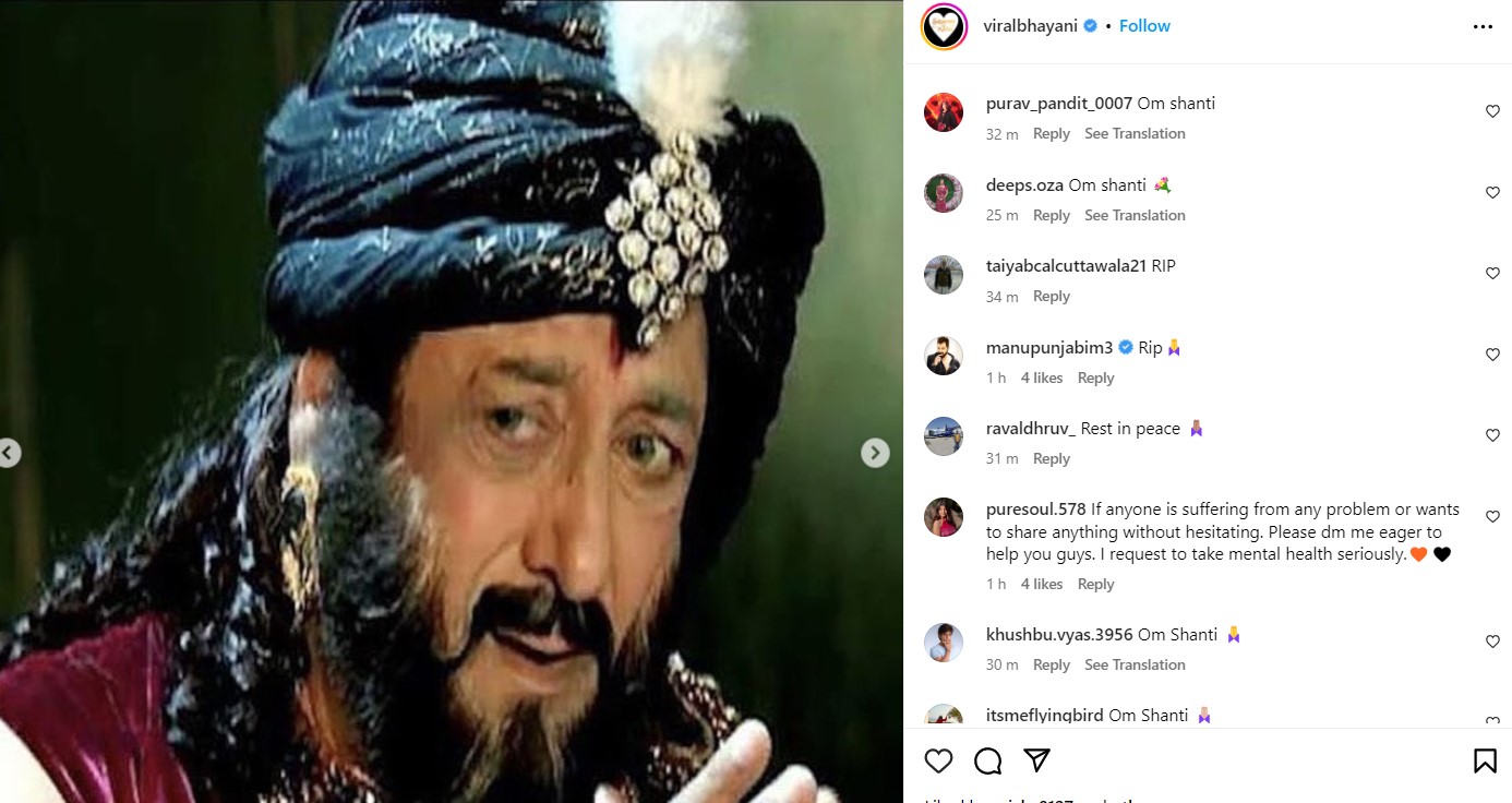 पैपराजी वीरल भयानी ने भी गूफी पेंटल के निधन पर इंस्टाग्राम पर पोस्ट शेयर किया। जहां एक्टर के फैंस ने उन्हें श्रद्धांजलि दी। इसके अलावा बिग बॉस फेम एक्टर मनु पंजाबी ने भी शोक व्यक्त किया। पोस्ट पर रिएक्ट करते हुए उन्होंने गूफी पेंटल की आत्मा की शांति की कामना की।