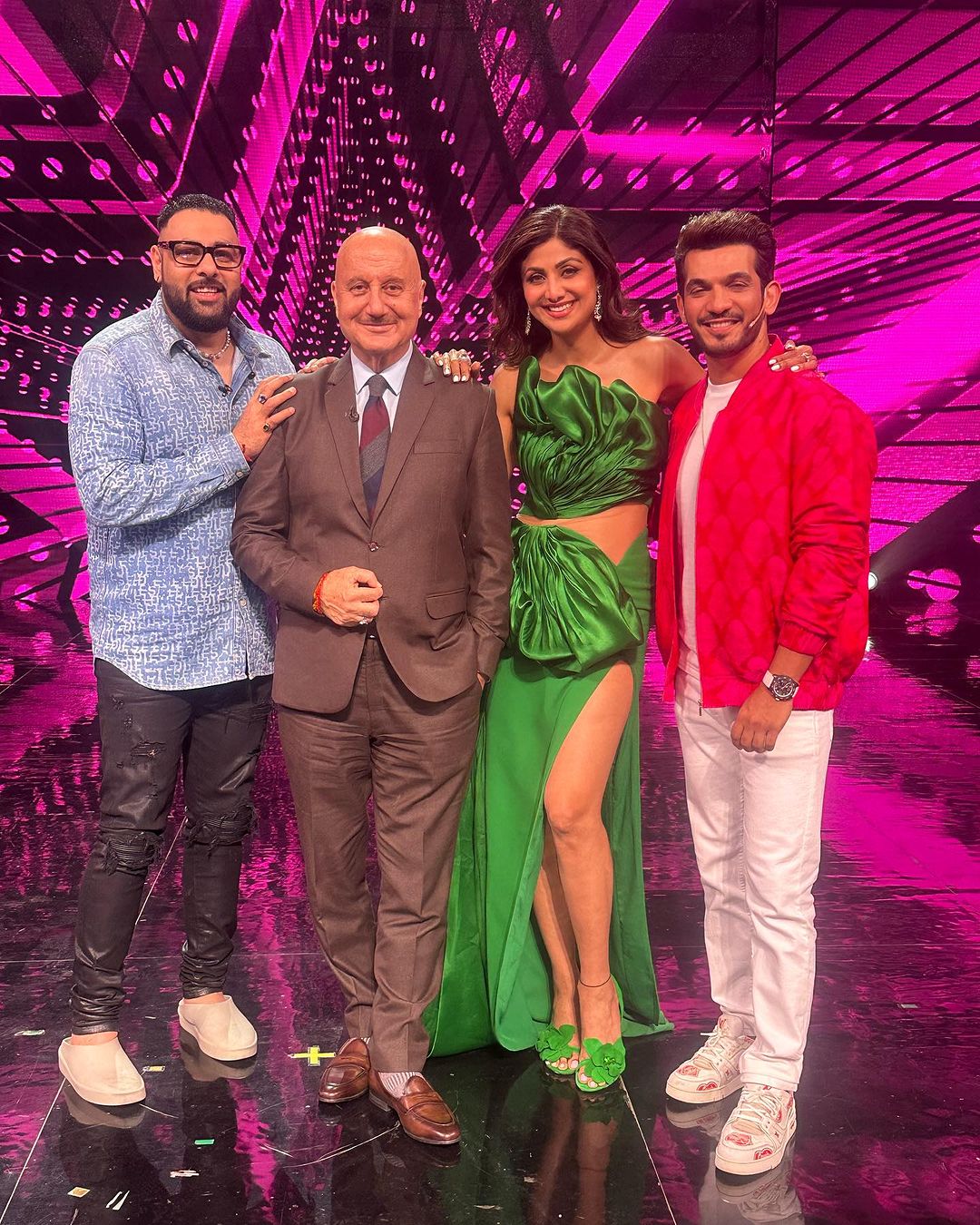 अनुपम खेर ने रविवार को अपने इंस्टाग्राम अकाउंट पर शिल्पा शेट्टी, बादशाह और शो के होस्ट अर्जुन बिजलानी के साथ इंडियाज गॉट टैलेंट के मंच से एक फोटो शेयर की। इस फोटो में सभी कैमरा के लिए स्माइल करते हुए नजर आ रहे हैं।