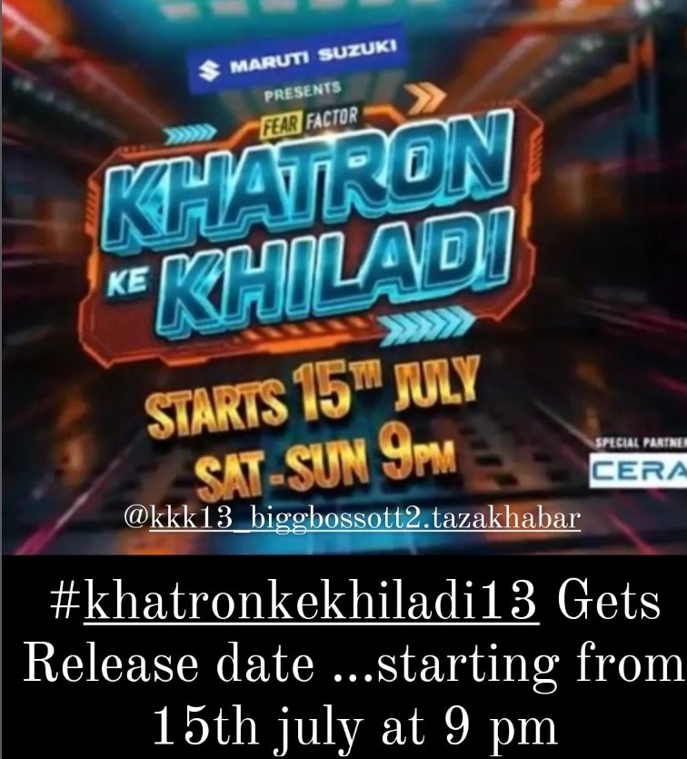 शो से जुड़ी हर एक अपडेट देने वाले पेज के अनुसार, इस बार 'खतरों के खिलाड़ी 13' 15 जुलाई से शुरू हो रहा है। शो शनिवार और रविवार रात 9 बजे टेलीकास्ट किया जाएगा। शो के कुछ सीन साउथ अफ्रीका में, तो कुछ अर्जेंटीना में शूट हुए हैं।