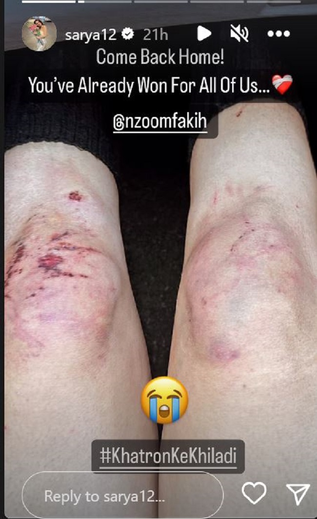 अब शनिवार को अंजुम फकीह भी चोटिल हो गई हैं। उन्होंने इंस्टाग्राम पर एक तस्वीर शेयर की थी। इसी तस्वीर को श्रद्धा आर्या ने सोशल मीडिया पर शेयर कर अंजुम के प्रति चिंता जताई है और उन्हें वापस आने का निवेदन किया है। तस्वीरों में अंजुम फकीह का छिला हुआ घुटना दिखाई दे रहा है। उनके दाहिने घुटने में कुछ खरोचें आई है।