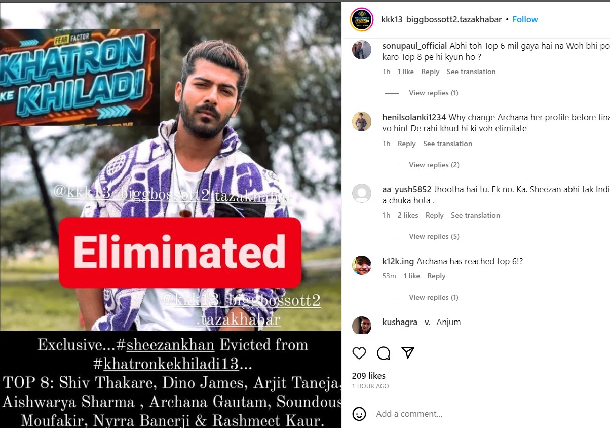 शीजान खान के एलिमिनेशन की खबर सामने आने के बाद कई फैंस उदास हैं। किसी ने इसे फेक बताया, तो किसी ने कहा कि अगर शीजान आउट होता, तो अभी तक इंडिया आ चुका होता।