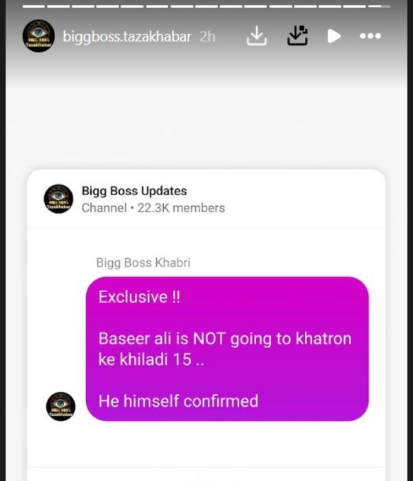 बिग बॉस ताजा खबर की रिपोर्ट में अब दावा किया गया है कि अभिनेता बसीर अली (Baseer Ali) ने खुद साफ किया है कि वह खतरों के खिलाड़ी 15 का हिस्सा नहीं हैं। हालांकि, हमारी तरफ से इस बात की पुष्टि नहीं की जा रही है कि टीवी एक्टर इस शो का हिस्सा बनेंगे या नहीं। इसके लिए आधिकारिक घोषणा का इंतजार करना होगा।