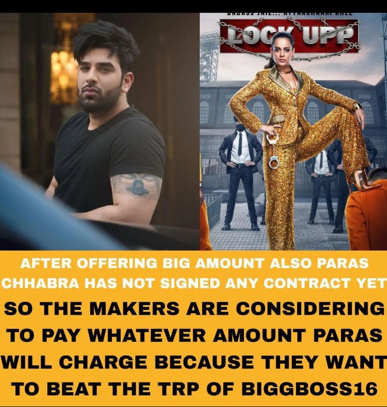 टेलिविजन इंडस्ट्री का फेमस चेहरा माने जाने वाले पारस छाबड़ा को लॉक अप 2 के लिए अप्रोच किया गया है। इसकी बहुत गुंजाइश है कि वह इस शो का हिस्सा बनेंगे। पारस 'स्प्लिट्सविला 5' और 'बिग बॉस 13' का हिस्सा रह चुके हैं। सोशल मीडिया पर उनकी अच्छी फैन फॉलोइंग है। मीडिया रिपोर्ट्स के मुताबिक, पारस ने अभी तक कोई कॉन्ट्रैक्ट साइन नहीं किया है। ऐसे में लॉक अप 2 के मेकर्स उन्हें मुंह मांगी कीमत देने के लिए तैयार हैं। शो के मेकर्स की यह पूरी कोशिश है कि वह बिग बॉस की टीआरपी को मात दे सकें।