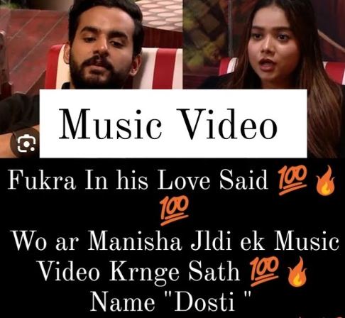 खुद फुकरा इंसान ने अपने लाइव में भी ये भी कहा था कि वह और मनीषा जल्द ही एक गाना साथ में करेंगे। उनके इस गाने का टाइटल 'दोस्ती' है, जिसकी शूटिंग वह जल्द ही शुरू करने वाले हैं।