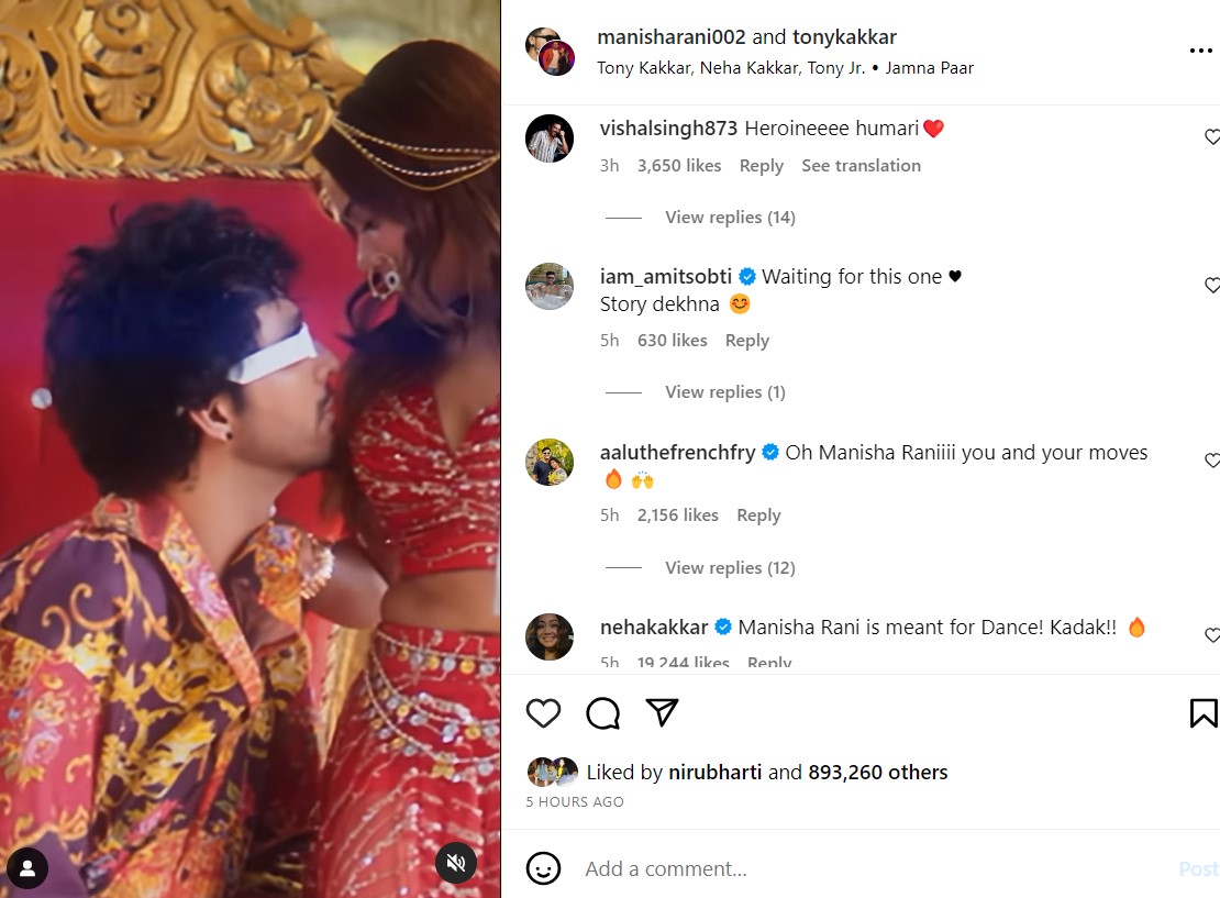 फुकरा इंसान ने वीडियो के लिए हार्ट इमोजी देकर कमेंट किया है। टोनी कक्कड़ ने मनीषा की क्यूटनेस की तारीफ की है।