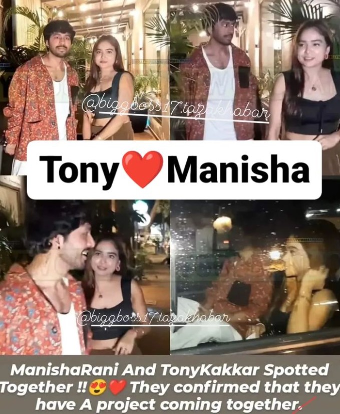 अब खबर आ रही है कि टोनी, मनीषा से किए वादे को पूरा करने की तैयारी में हैं। हाल ही में दोनों को एक साथ स्पॉट किया गया। 'बिग बॉस' से जुड़ी अपडेट्स देने वाले एक फैन पेज ने मनीषा और टोनी की एल्बम के लिए मीटिंग की जानकारी दी। जानकारी के अनुसार, मनीषा रानी और टोनी कक्कड़ ने कन्फर्म किया है कि वह एक प्रोजेक्ट में साथ काम करने वाले हैं।