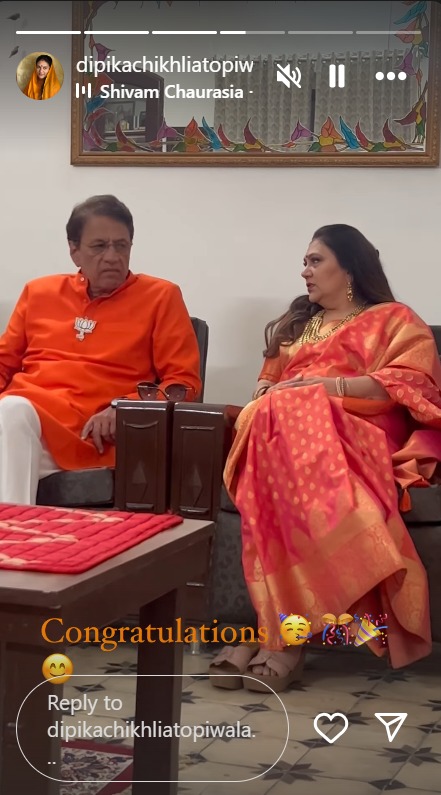 अरुण की इस बेहतरीन जीत पर दीपिका चिखलिया ने अपने ऑफिशियल इंस्टाग्राम हैंडल पर एक लेटेस्ट स्टोरी पोस्ट की है। इस पोस्ट में अरुण और दीपिका की एक तस्वीर मौजूद है, जिस पर कैप्शन में लिखा है- मुबारक हो। इस तरह से रामायण की सीता ने अपने श्रीराम को जीत की हार्दिक की शुभकामनाएं दे दी हैं।