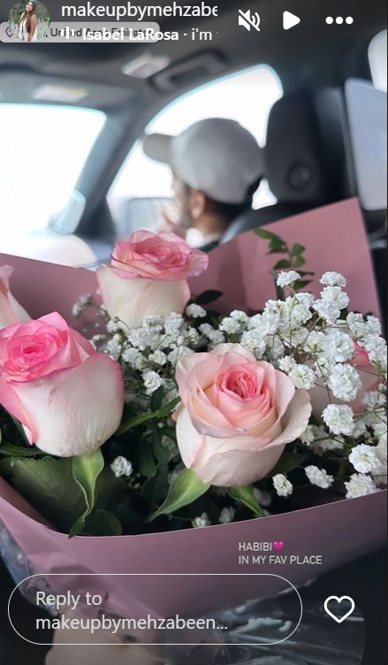 इंस्टाग्राम स्टोरी पर शेयर की गई पहली फोटो में महजबीन कोटवाला एयरपोर्ट पर स्टाइल में पोज देती हुई नजर आ रही हैं। फोटो के साथ उन्होंने लिखा, "चलो चलते हैं।" एक फोटो में वह कार में बैठी हैं और उन्होंने हाथों में गुलदस्ता लिया है। आगे की तरह मुनव्वर बैठे हुए हैं। फोटो शेयर करते हुए महजबीन ने लिखा, "मेरी फेवरेट जगह में हबीबी।" उन्होंने हबीबी के आगे हार्ट इमोजी भी बनाई है।