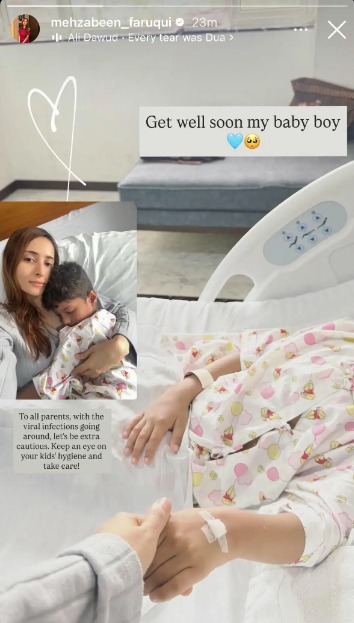 इंस्टा स्टोरी पर फोटो शेयर करते हुए उन्होंने लिखा, "मेरे प्यारे बच्चे, जल्दी ठीक हो जाओ ।" आगे उन्होंने माता-पिता को सलाह भी दी। उन्होंने लिखा, "सभी माता-पिता, चूंकि वायरल संक्रमण फैला हुआ है इसलिए अतिरिक्त सावधानी बरतें। अपने बच्चों की स्वच्छता का ध्यान रखें और उनका ख्याल रखें!"