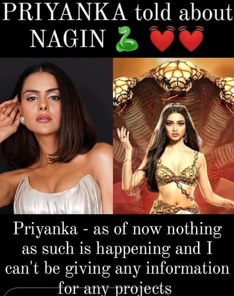 सुम्बुल के बाद जहां सौंदर्या ने ये साफ किया था कि वह 'नागिन-7 का हिस्सा नहीं बन रही हैं, तो वहीं प्रियंका ने भी अब एकता कपूर के शो को लेकर मीडिया से बातचीत की है। बिग बॉस जब से खत्म हुआ है, तब से ही लगातार ये खबर आ रही थी कि सलमान खान की फिल्म के अलावा वह एकता कपूर के शो में नजर आ सकती हैं, जिस पर अब एक्ट्रेस ने अब प्रतिक्रिया जाहिर की है।