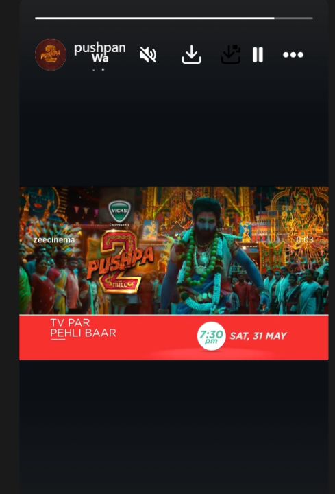 अब छोटे पर्दे पर पहली बार अल्लू अर्जुन की पुष्पा द रूल दस्तक देने वाली है। इसकी जानकारी मेकर्स ने अपने ऑफिशियल इंस्टाग्राम हैंडल पर स्टोरी के जरिए दी है। 31 मई शनिवार को शाम 7:30 बजे इस फिल्म को जी सिनेमा टीवी चैनल पर प्रीमियर किया जाएगा। ऐसे में अगर आपने अभी तक पुष्पा 2 को नहीं देखा है तो अब आप घर बैठे इसका आनंद ले सकते हैं।