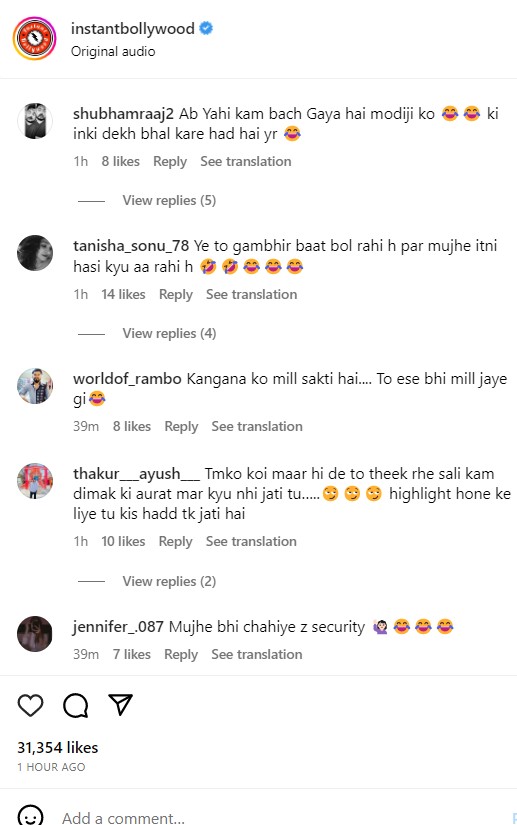 एक फैन ने कमेंट किया, ''मतलब कुछ भी...खुद को क्या समझती। कैसे कैसे लोग हैं इंडिया में।''
