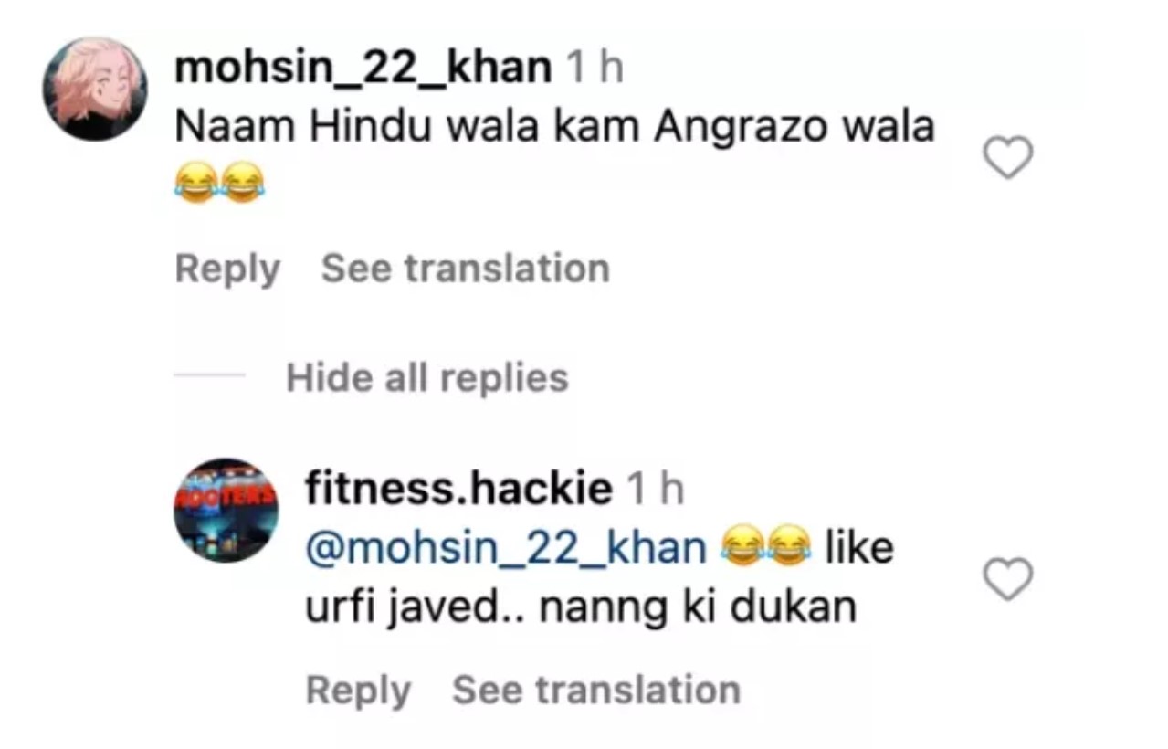 एक ने लिखा, 'रामायण का पाठ पूरी दुनिया को पढ़ा दिया सिर्फ पोती को पढ़ाना भूल गए रामानंद सागर जी।' एक अन्य ने कमेंट किया, 'नाम हिंदू वाला काम अंग्रेजों वाला।' एक यूजर ने उनकी तुलना उर्फी जावेद से तक कर डाली।