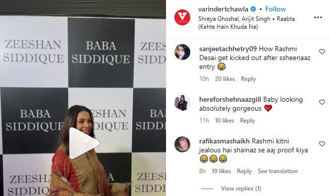 रश्मि देसाई का बाबा सिद्दीकी की पार्टी से ये वीडियो सोशल मीडिया पर धड़ल्ले से वायरल हो रहा है। इंटरनेट पर वायरल हो रहे इस वीडियो में रश्मि देसाई अपने एक दोस्त से बात करते हुए नजर आ रही हैं, लेकिन जैसे ही शहनाज गिल अंदर आती हैं, वैसे ही रश्मि देसाई उन्हें देखकर पूरी तरह से इग्नोर कर देती हैं।