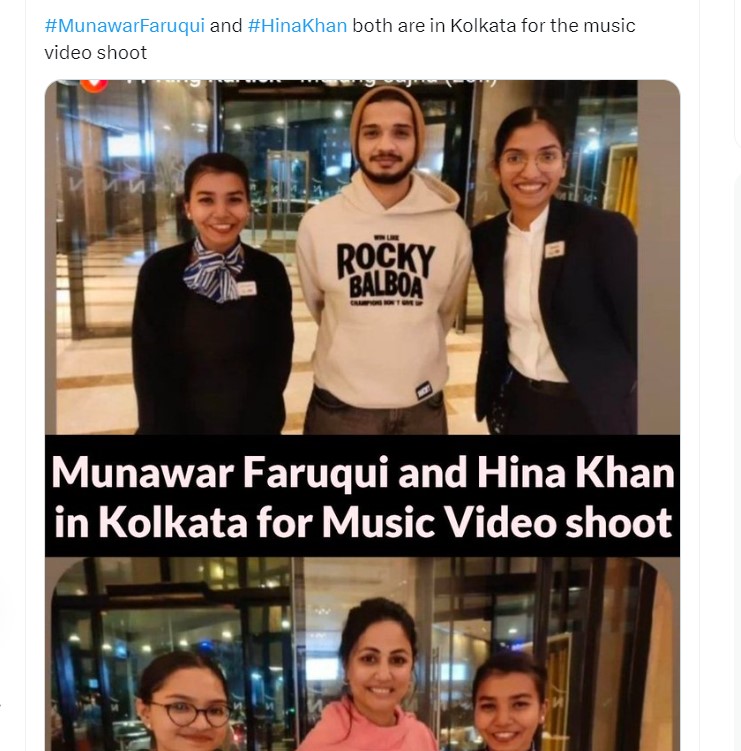 मुनव्वर फारुकी के फैन पेज की तरफ से जानकारी शेयर की गई है कि वह इन दिनों कोलकाता में एक म्यूजिक एल्बम की शूटिंग के लिए गए हैं। इस वीडियो में उनके साथ नजर आएंगी छोटे पर्दे की नामी एक्ट्रेस हिना खान (Hina Khan)।
