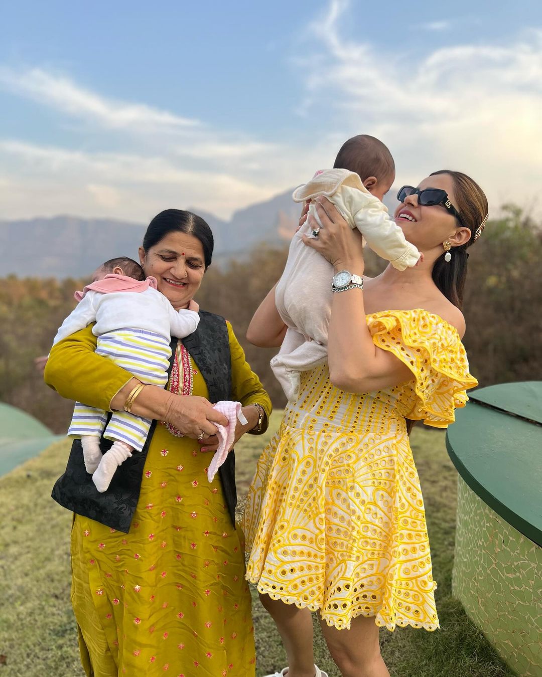 रुबीना दिलैक की इन तस्वीरों में उनकी जुड़वा बेटियां, पति और एक्टर अभिनव शुक्ला और उनकी सासू मां एक संग नजर आ रही हैं। दरअसल अभिनेत्री की ये फोटो वैलेंटाइन डे के मौके की हैं, जब रुबीना अपने परिवार के साथ घूमने निकली हैं। इस बात की जानकारी उन्होंने इन तस्वीरों के कैप्शन में दी है।