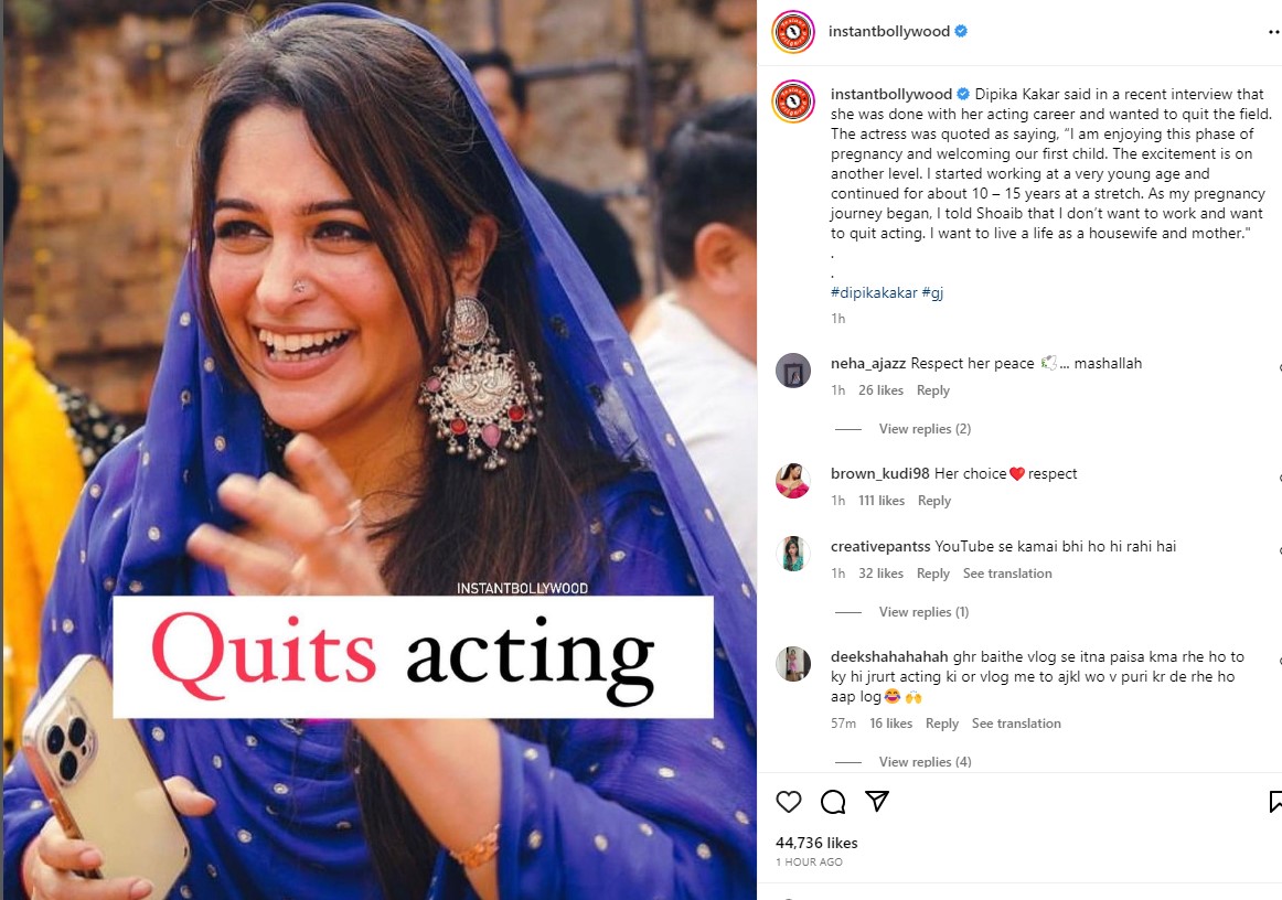 दीपिका कक्कड़ ने अपने करियर में टीवी से लेकर रियलिटी शो तक में काम किया है। टेलीविजन की दुनिया में उनका सबसे पॉपुलर सीरियल 'ससुराल सिमर का' है। आखिरी बार वह 2020 में 'कहां हम कहां तुम' शो में दिखी थीं। इस शो में उनके हीरो करण ग्रोवर थे। दीपिका 'बिग बॉस 12' की विनर रह चुकी हैं। इतना नाम कमाने के बाद अब उन्होंने एक्टिंग क्विट करने का मन बनाया है।