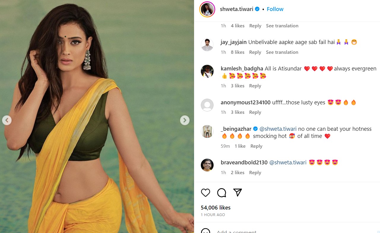 श्वेता एक बार फिर अपनी कातिलाना अदाओं से फैंस का दिल जीतने में कामयाब रही हैं। देसी गर्ल वाले लुक में भी उन्होंने एक बार फिर अपने फैंस को हैरान कर दिया है। एक यूजर ने कमेंट किया, ''कोई कहेगा कि यार इनकी 25 साल की बेटी है और ये खुद 42 साल की हैं...ऑसम।''