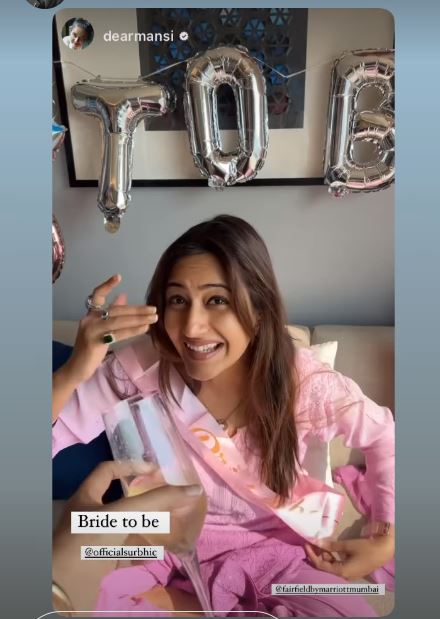 अब सुरभि चंदना बस चंद दिनों में करण की दुल्हनिया बनने जा रही हैं। शादी से 11 दिन पहले एक्ट्रेस ने अपने दोस्तों के साथ बैचलरेट पार्टी एन्जॉय की। टीवी एक्ट्रेसेज मानसी श्रीवास्तव और श्रेणु पारिख समेत दोस्तों ने होने वाली दुल्हन सुरभि के लिए एक प्यारा सा सरप्राइज प्लान किया था। उन्होंने रूम को बैलून के साथ डेकोरेट करके केक और कप केक के साथ ब्राइड टू बी को खास महसूस कराया।