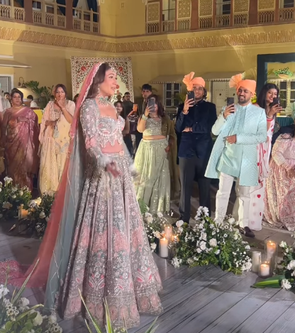 अब उनके ब्राइडल एंट्री से लेकर फेरों तक के कई फोटोज और वीडियो सामने आ गए हैं। ये फोटो और वीडियो सोशल मीडिया पर अब काफी तेजी से वायरल हो रहे हैं।