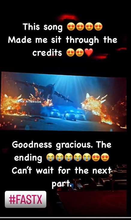 मुनमुन दत्ता ने फास्ट एक्स स्क्रीनिंग के अंदर से कई स्टोरीज शेयर कीं और फिल्म को लेकर अपना रिव्यू भी शेयर किया। सबसे पहले, मुनमुन ने फिल्म की ओपनिंग शेयर की और लिखा, "आखिरकार वाह! मैं सीरीज की बहुत बड़ी फैन हूं।" एक दूसरे वीडियो में, मुनमुन ने विन डीजल की फिल्म के एक एक्शन सीन को पोस्ट किया और उन्होंने लिखा, "और इसने निराश नहीं किया। एक्शन बड़ा और बेहतर हो गया।"