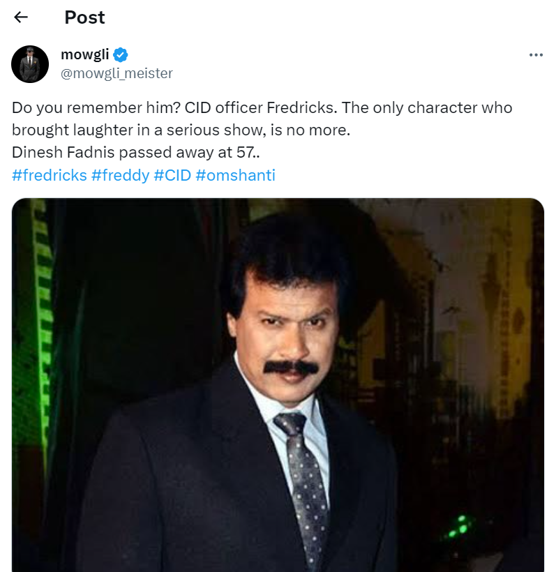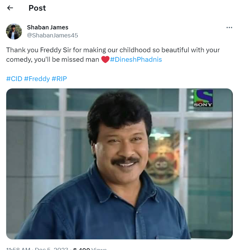 दूसरे यूजर ने लिखा, अपनी कॉमेडी से हमारे बचपन को इतना खूबसूरत बनाने के लिए धन्यवाद फ्रेडी सर, आपकी याद आएगी यार #DineshPhadnis।