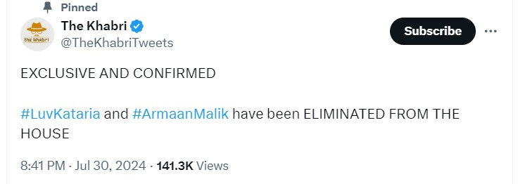 अरमान के अलावा जो दूसरा कंटेस्टेंट बाहर हुआ है, उसका नाम सुन फैंस की खुशी एक पल में दुख में बदल गई। यूजर्स का कहना है कि उन्हें बिलकुल अंदाजा नहीं था कि अरमान के साथ इस कंटेस्टेंट को भी मेकर्स बाहर का रास्ता दिखाएंगे। जिस कंटेस्टेंट की हम बात कर रहे हैं, वह लवकेश कटारिया (Lovekesh Kataria) हैं।