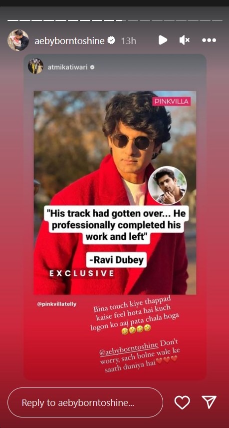 पिंकविला से बातचीत में रवि दुबे ने बताया, ''अभिषेक का शो में ट्रैक खत्म हो चुका था। उन्होंने प्रोफेशनल तरीके से अपना काम पूरा किया और चले गए।'' वहीं, शो के डायरेक्टर ने कहा, '' अभिषेक ने कभी भी ऐसा कुछ भी नहीं कहा या किया, जिससे शूट में समस्याएं हों। उन्हें कभी शो से बाहर नहीं निकाला गया था।''