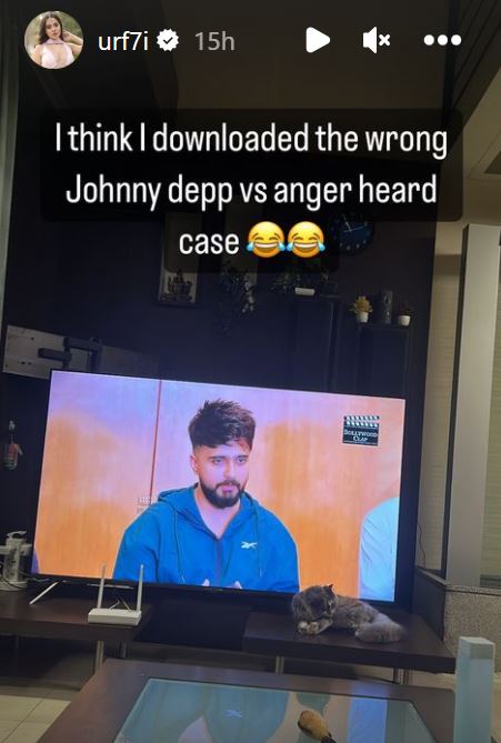 फोटो के साथ उर्फी जावेद ने आदिल-राखी के विवाद को जॉनी डेप और उनकी एक्स वाइफ एंबर हर्ड के विवाद से तुलना की। उन्होंने कैप्शन में लिखा, "मुझे लगता है कि मैंने गलत जॉनी डेप वर्सेज एंगर हर्ड केस डाउनलोड कर लिया है।"