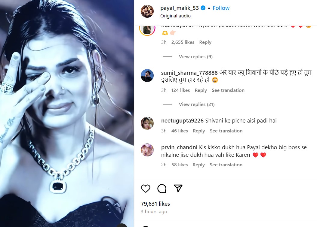 एक अन्य यूजर ने कमेंट किया, 'क्यों शिवानी के पीछे पड़े हो तुम। इसलिए तुम हार गई हो।' वहीं, कई यूजर्स ने पायल की वाइल्ड कार्ड एंट्री करने की भी बात कही।