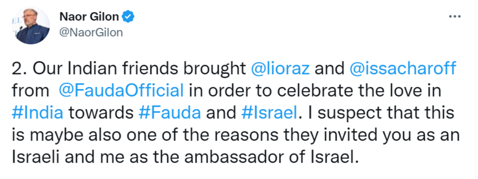एक तरफ इजरायल के फिल्ममेकर नदाव लपिड खबरों में छाये रहे तो दूसरी ओर इजरायल की वेब सीरीज फौदा का नाम भी गूंजता रहा। नदाव के कमेंट के बाद इजरायली राजनयिक ने उनके बयान की मजम्मत करते हुए फौदा की मिसाल दी, जिसे इंटरनेशनल फिल्म फेस्टिवल में खूब सराहना मिली और चौथे सीजन का एशिया प्रीमियर हुआ।
