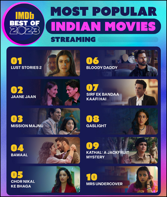 2023 में 30 से ज्यादा हिंदी फिल्में सीधे ओटीटी पर रिलीज हुई थीं, जिनमें कई जाने-माने कलाकारों ने काम किया। इनमें कुछ फिल्मों को खूब सराहना मिली। इंटरनेट मूवी डेटाबेस यानी आइएमडीबी ने लोकप्रियता के आधार पर ऐसी 10 फिल्मों की लिस्ट जारी की है, जिन्हें प्लेटफॉर्म पर सबसे ज्यादा सर्च किया गया।
