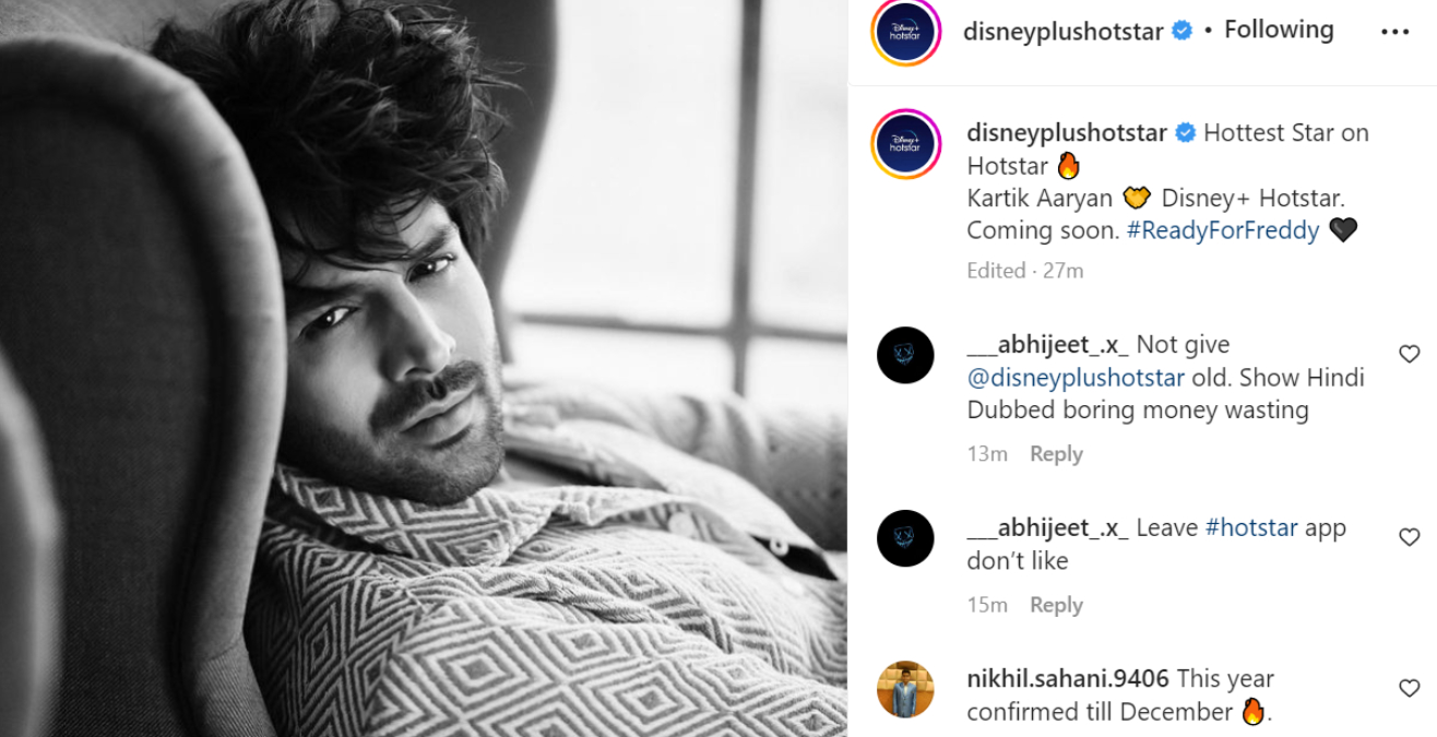 कार्तिक आर्यन की इस साल एक ही फिल्म भूल भुलैया 2 रिलीज हुई है, जो बेहद सफल रही थी। अनीस बज्मी निर्देशित हॉरर कॉमेडी ने 180 करोड़ से अधिक नेट कलेक्शन बॉक्स ऑफिस पर किया था, जिसके बाद कार्तिक उन एक्टर्स में शामिल हो गये हैं, जिनकी फिल्मों ने अच्छा प्रदर्शन किया है। वैसे, यह साल बॉलीवुड के लिए काफी खराब रहा। फ्रेडी अगर दिसम्बर तक रिलीज होती है तो 2022 में कार्तिक की दूसरी रिलीज होगी। ओटीटी स्पेस में भी यह कार्तिक की दूसरी फिल्म होगी। उन्होंने 2021 में रिलीज हुई राम माधवानी निर्देशित धमाका से ओटीटी पर डेब्यू किया था।