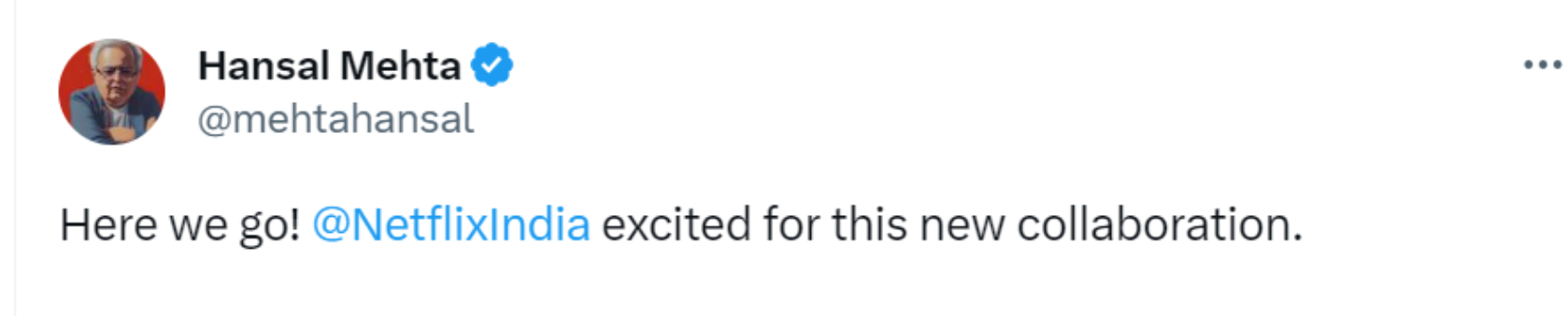 नेटफ्लिक्स ने हंसल मेहता के साथ मल्टी ईयर सीरीज पार्टनरशिप की है, जिसके तहत स्कूप निर्देशक प्लेटफॉर्म के लिए कंटेंट क्रिएट करेंगे।
