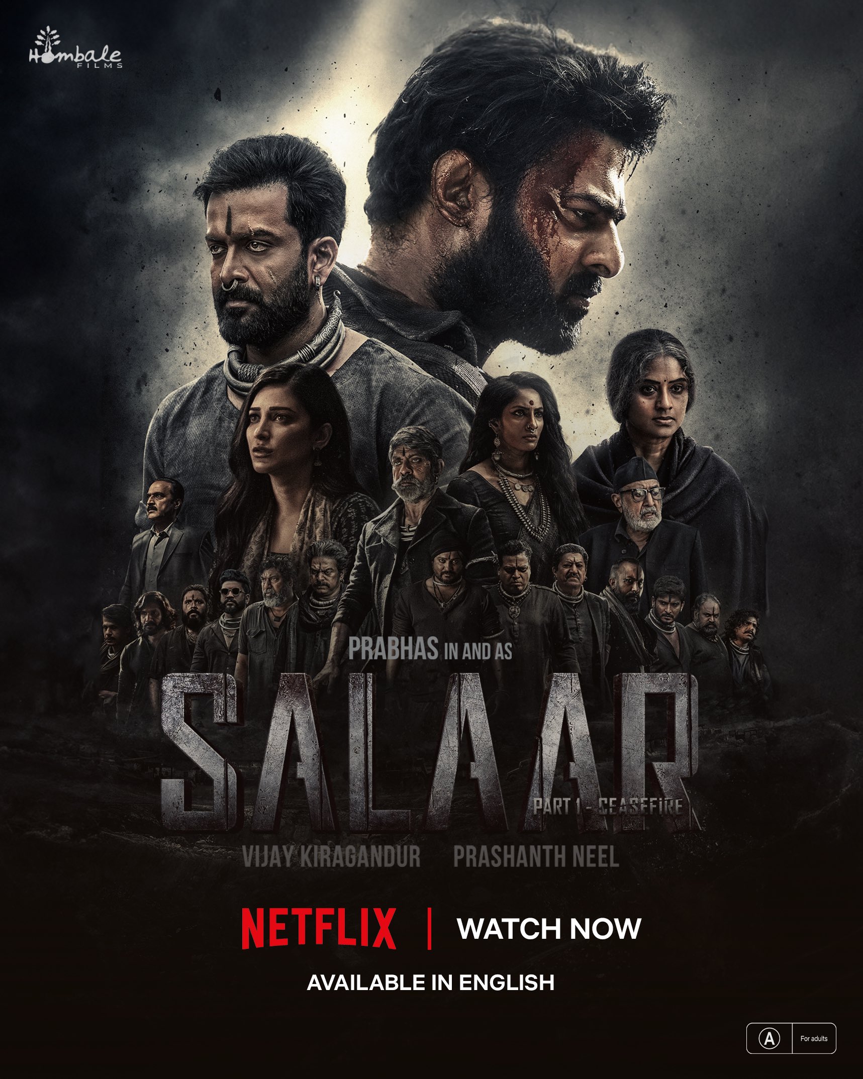 सालार के मेकर्स ने मंगलवार को सोशल मीडिया पर फिल्म का पोस्ट शेयर करते हुए जानकारी दी कि फिल्म का इंग्लिश डब वर्जन ओटीटी पर रिलीज कर दिया गया है। कैप्शन में फिल्म की प्रोडक्शन कंपनी ने जानकारी दी कि भारी डिमांड के कारण उन्होंने फैंस की ये इच्छा पूरी की है। सालार सीजफायर का इंग्लिश वर्जन अब दुनियाभर में नेटफ्लिक्स पर देखा जा सकता है।